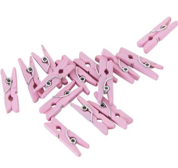 - Lyserøde mini tøjklemmer til bordpynt