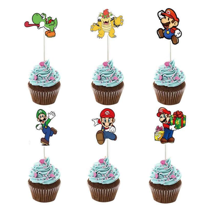 Køb Super Mario kagepynt til dine muffins og cupcakes og servere dem i flot stil og fint pyntet til jeres børnefødselsdag og fødselsdagsfest med Super Mario tema. Pynt dine kager, snacks, lagkage og andre søde sager med disse 24 festlige og dekorative Super Mario toppers. På alle disse kagepynt er der 6 forskellige flotte motiver med de kendte figurer fra Super Mario spillene og filmene som børnene vil elske. Med disse cupcake og muffins pynt kan du virkelig gøre din fest specielt og gøre børnene glade. Børnene vil med sikkerhed elske at holde en fantastisk børnefødselsdag i selskab med deres ynglings karakterer fra Super Mario verdenen.