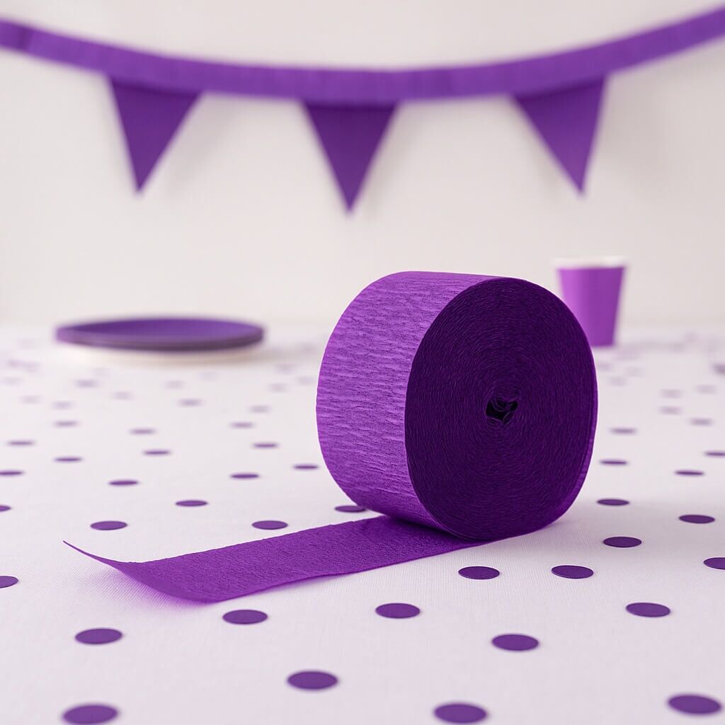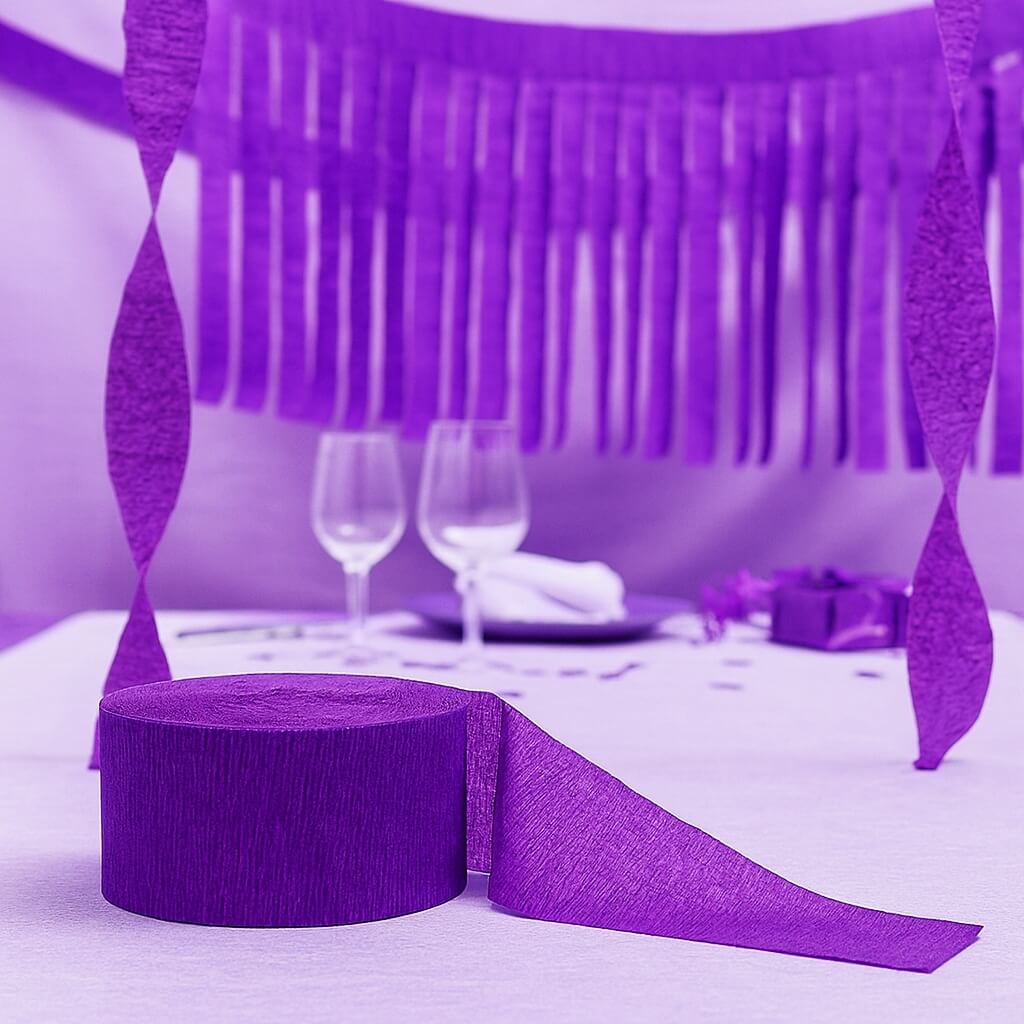 Pynt dit festlokale smukt og stilfuldt med dette crepepapir på rulle i mørk lilla, som giver et elegant og farverigt udtryk til enhver begivenhed.