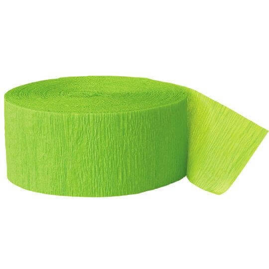 Skab en livlig, moderne og indbydende feststemning med dette lime grønne crepepapir på rulle – et simpelt, men effektivt værktøj til udsmykning af ethvert festlokale og hvert bord.