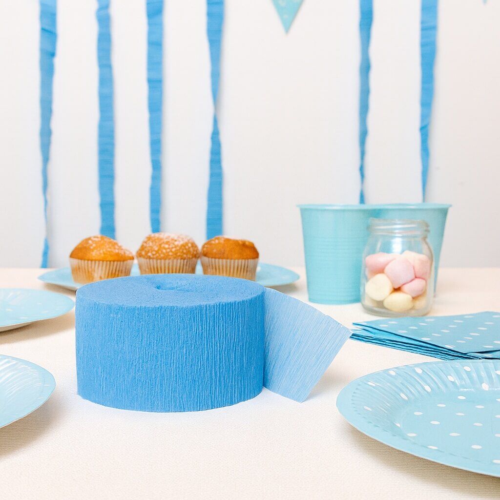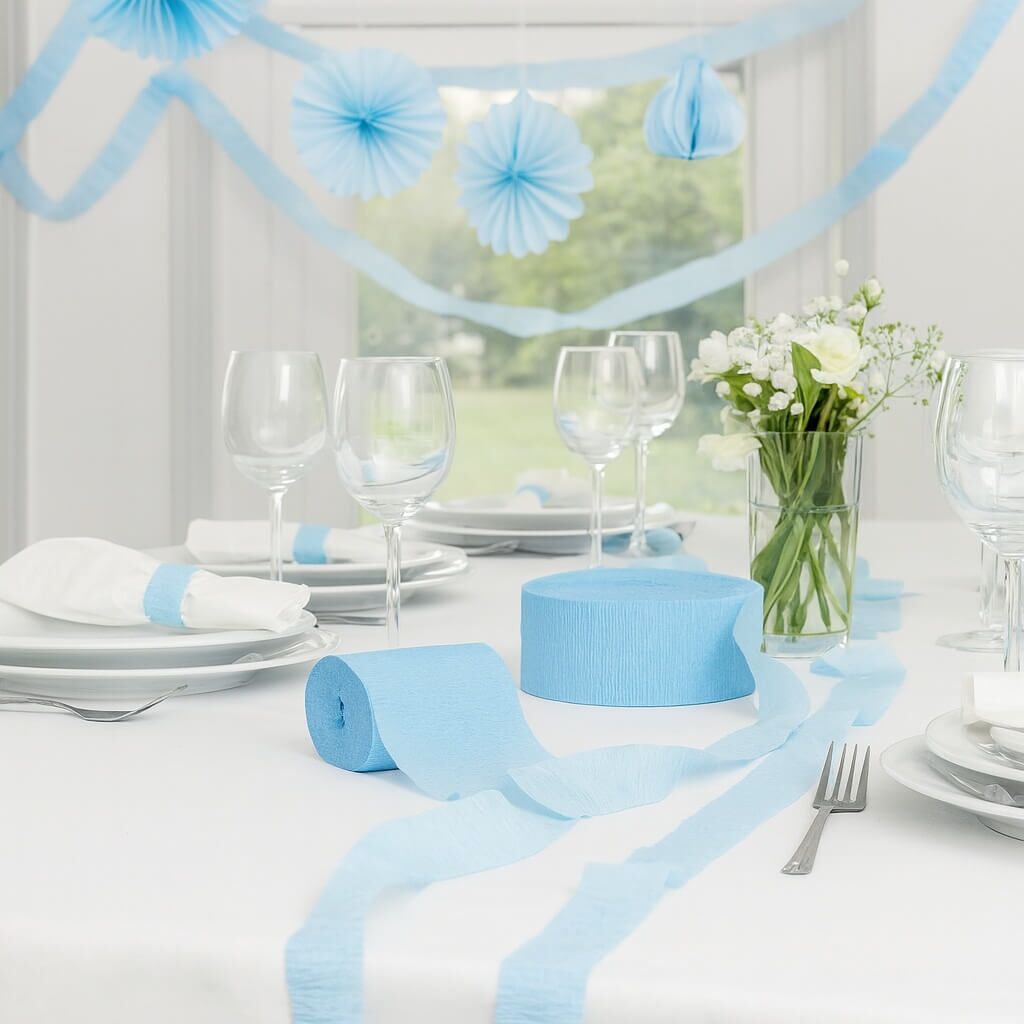 Denne lyseblå crepepapir rulle er et alsidigt og uundværligt produkt til både hobby, dekoration og festpynt.
