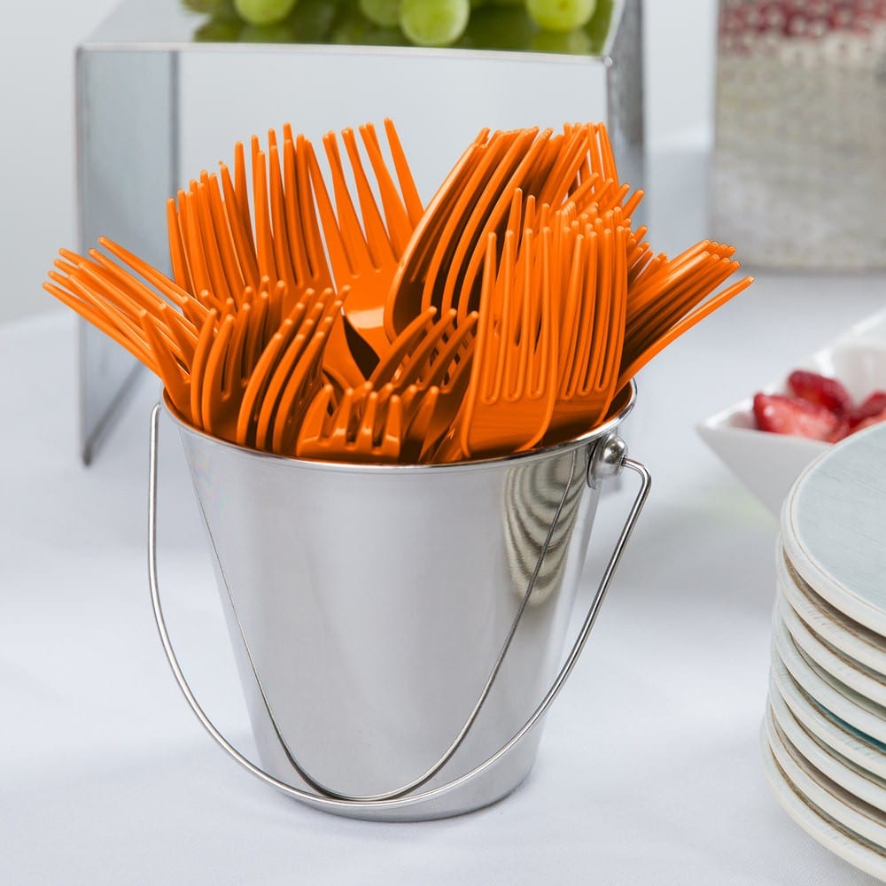 Denne orange plastik gaffel er fremstillet af kraftig plastik og vil tilføje farve til enhver fest og festlig begivenhed.