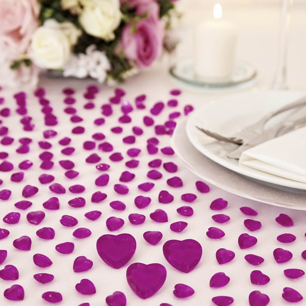Giv dit festbord et smukt, skinnende og romantisk udtryk med disse dekorative pynte diamanter cerise hjerter 12mm. De funklende hjerteformede diamanter er perfekte som bordpynt og skaber straks en festlig og elegant atmosfære, uanset om du dækker op til barnedåb, babyshower, fødselsdag, bryllup eller andre mærkedage.