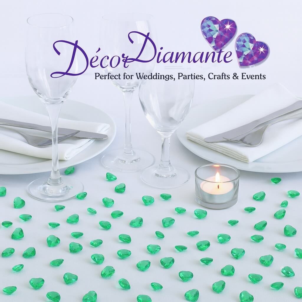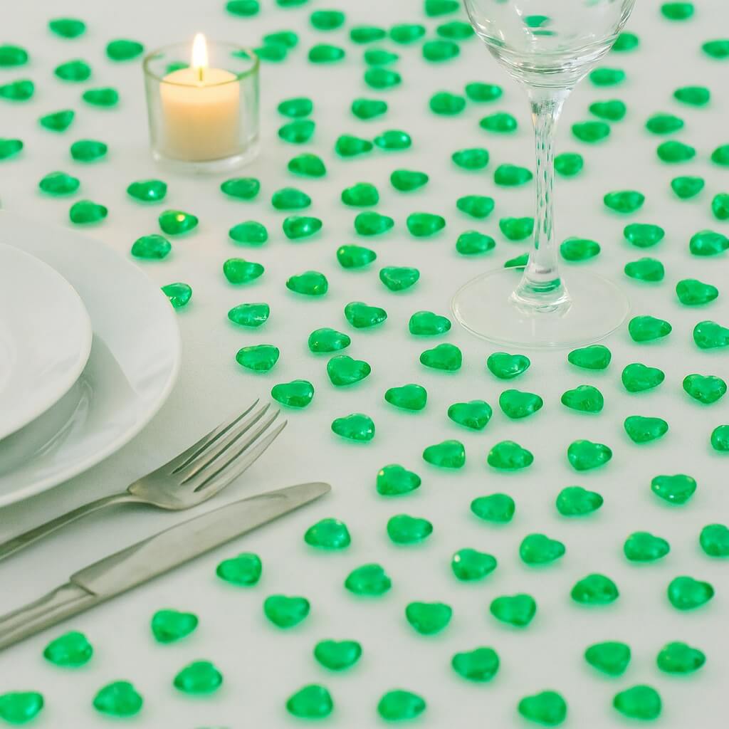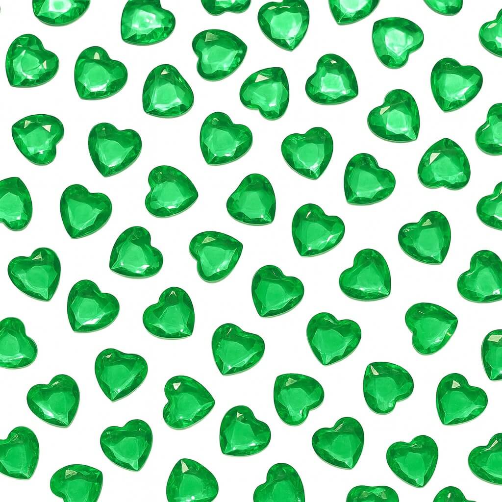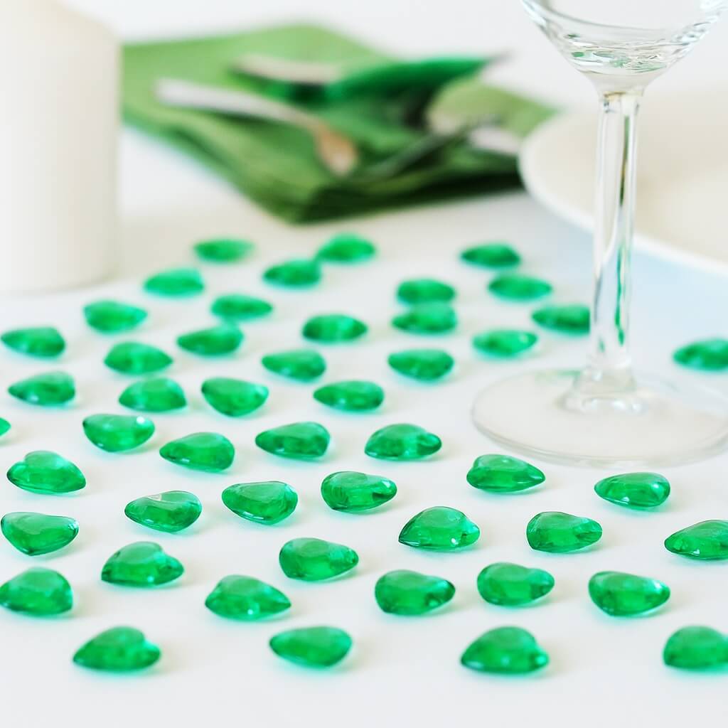 Giv dit festbord et eksklusivt, glimtende og elegant udtryk med vores pynte diamanter emerald grønne hjerter 12mm.