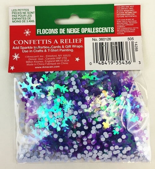 • Konfetti med iriserende snefnug
