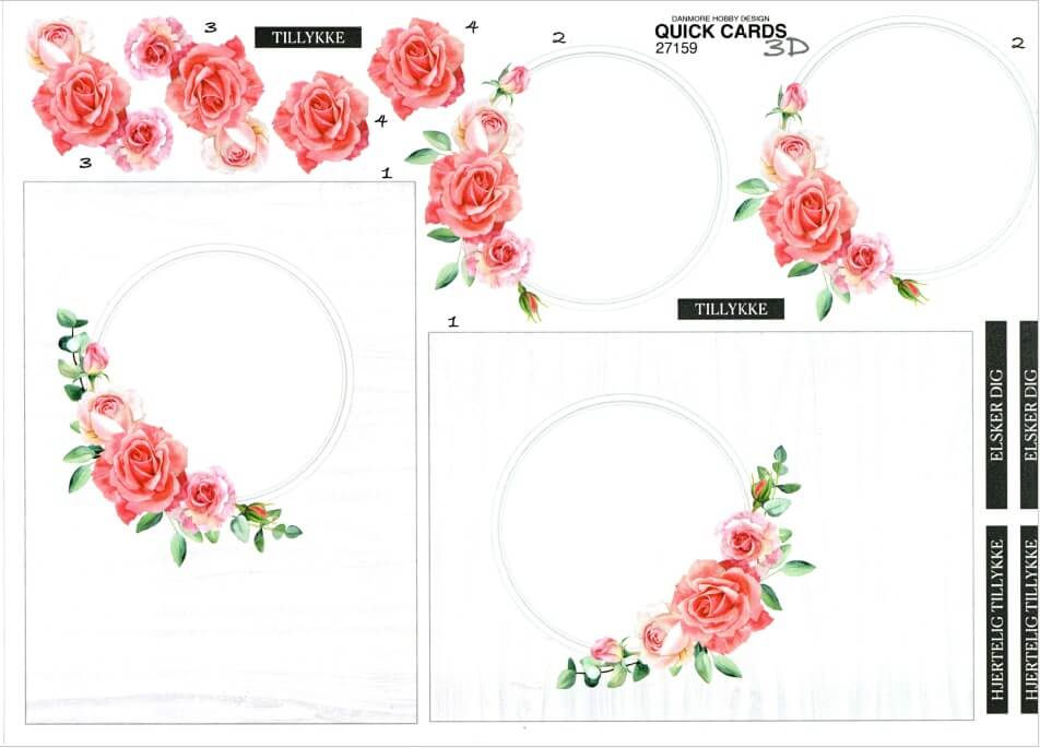 - Navn: 3D ark Quick Cards Lyserøde roser