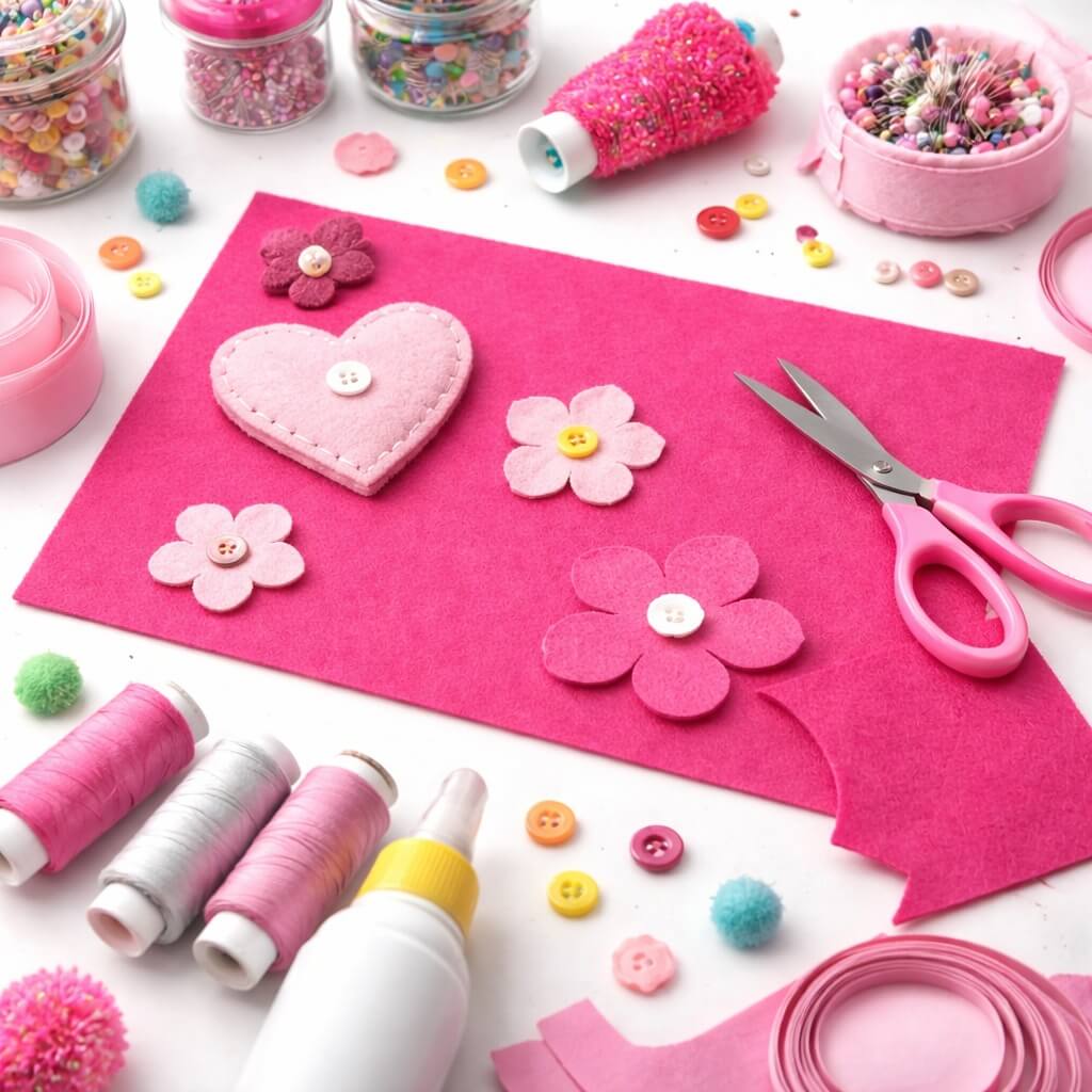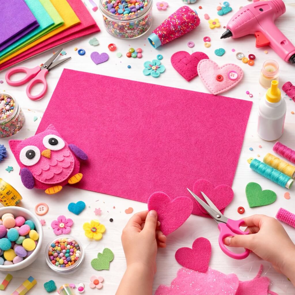 Kraftig og ensartet hobbyfilt i flot cyclam-farve. Perfekt til kreative projekter, DIY, dekoration, syning og hobbybrug. Leveres i 2 stk. á 20 × 30 cm.