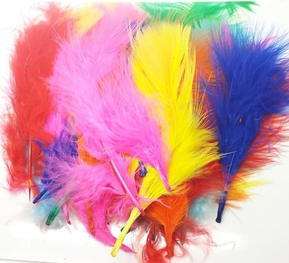Fjer marabou mix er en fantastisk samling af 17 farverige, håndplukkede fjer, der hver måler mellem 8 og 10 cm.