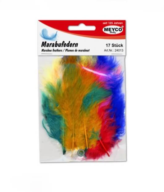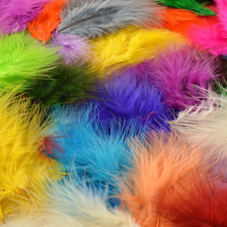 Fjer marabou mix er et alsidigt og farverigt supplement til enhver kreativ værktøjskasse og består af 17 håndplukkede fjer, der måler mellem 8 og 10 cm.