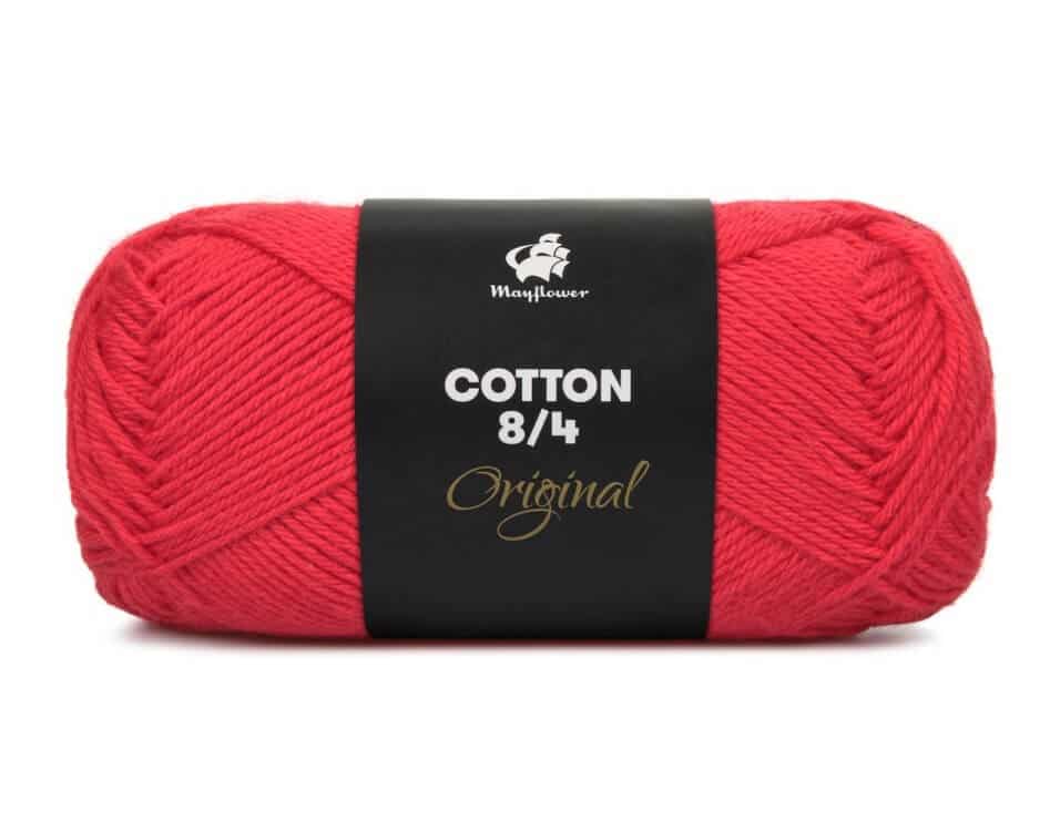 “Mayflower garn Cotton 8/4 Rød er lavet af 100% bomuld, hvilket sikrer garnets styrke og holdbarhed.” – Sjovogkreativ.dk
