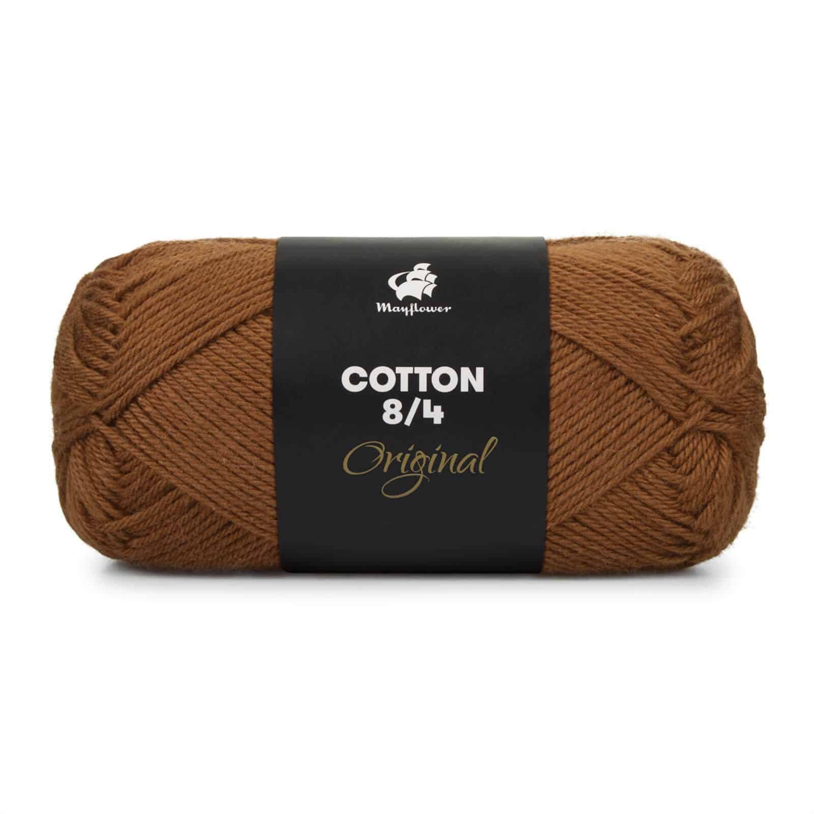 Mayflower garn cotton 8/4 brun er et høj kvalitets 100% bomuldsgarn, der er kendetegnet ved sin holdbarhed, blødhed og alsidighed, hvilket gør det ideelt til en bred vifte af håndarbejd projekter som tæpper, bluser, toppe og babystrik.