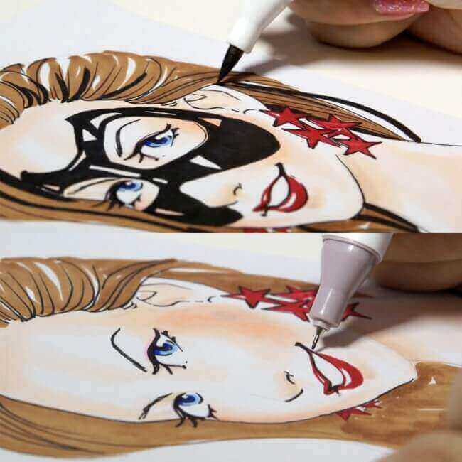 Den transparente kvalitet af blækket tillader nem blending og overgange mellem farver, hvilket gør den ideel til kunstværker, der kræver nuance og komplekse toner — fra enkle skygger til avancerede farveovergange.