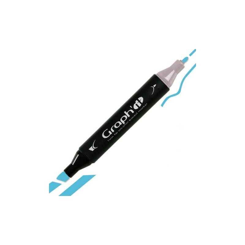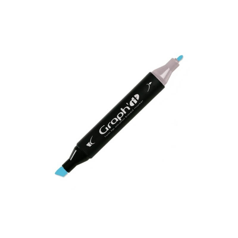 GRAPH’IT Twin Tip Marker GI07145 Lagoon er alkoholbaseret tusser med en flot lysblå farve og med dobbeltspids. En blød og fleksibel børstespids og en brede spids til de detaljerede streger og linjer.