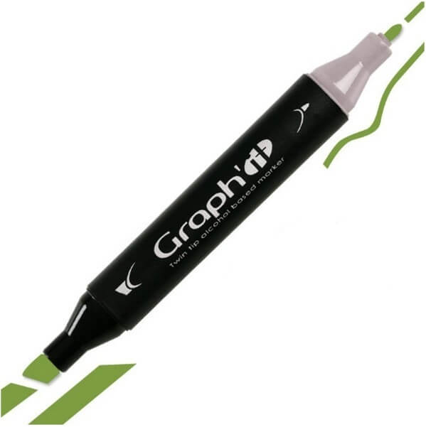 GRAPH’IT Twin Tip Marker GI08280 Military er alkoholbaserede tusser med en flot grøn farve og med dobbeltspids. En blød og fleksibel børstespids og en brede spids til de detaljerede streger og linjer.