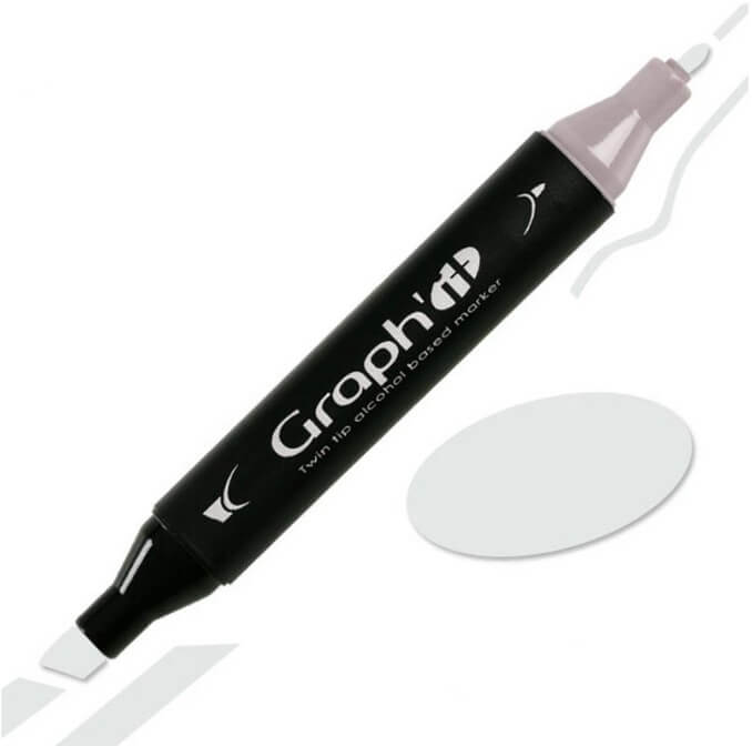 GRAPH’IT Twin Tip Marker GI09201 Green Grey 1 er alkoholbaserede tusser med en flot lys grå farve og med dobbeltspids. En blød og fleksibel børstespids og en brede spids til de detaljerede streger og linjer.