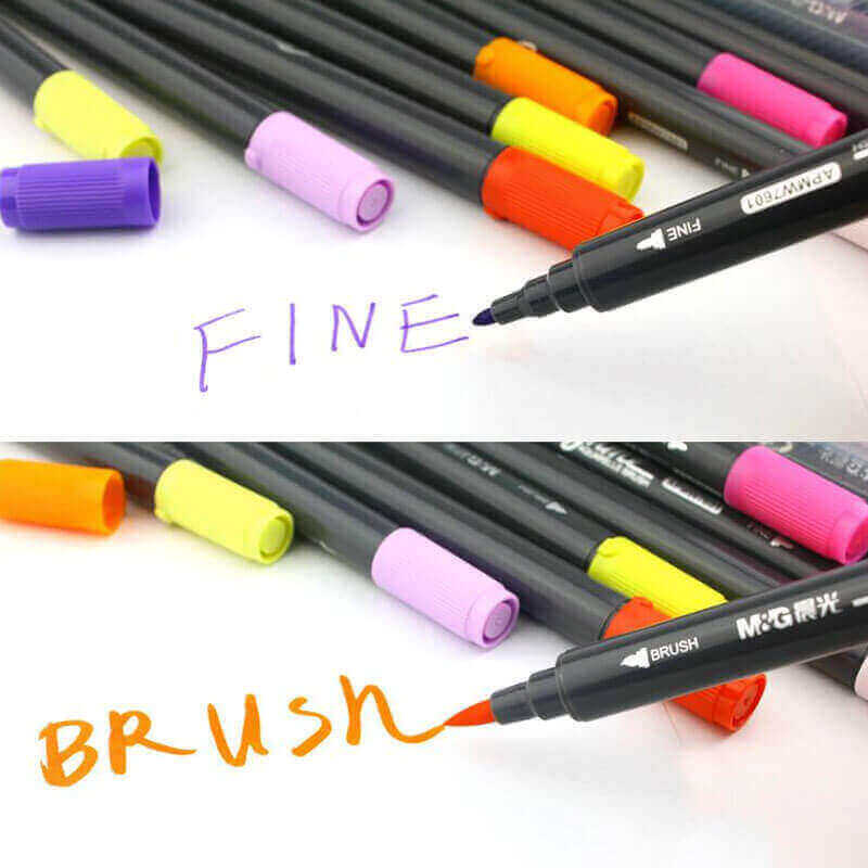 Den er udstyret med en dobbelt spids, som gør den unik i sin funktionalitet. Den ene ende har en blød syntetisk børstespids, der tilbyder optimal blækgennemstrømning, hvilket betyder, at du kan skabe både brede streger og subtile nuancer uden problemer.