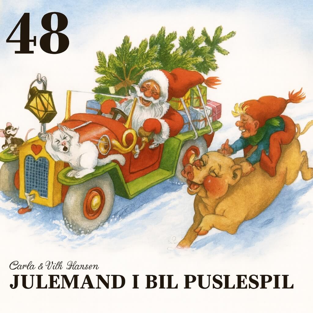 Vilhelm Hansen puslespil, puslespil 48 brikker, børnepuslespil, klassisk dansk illustration, Rasmus Klump stil puslespil, nostalgisk puslespil, læring gennem leg, puslespil til børn 4 år, gaveidé børn, høj kvalitet puslespil
