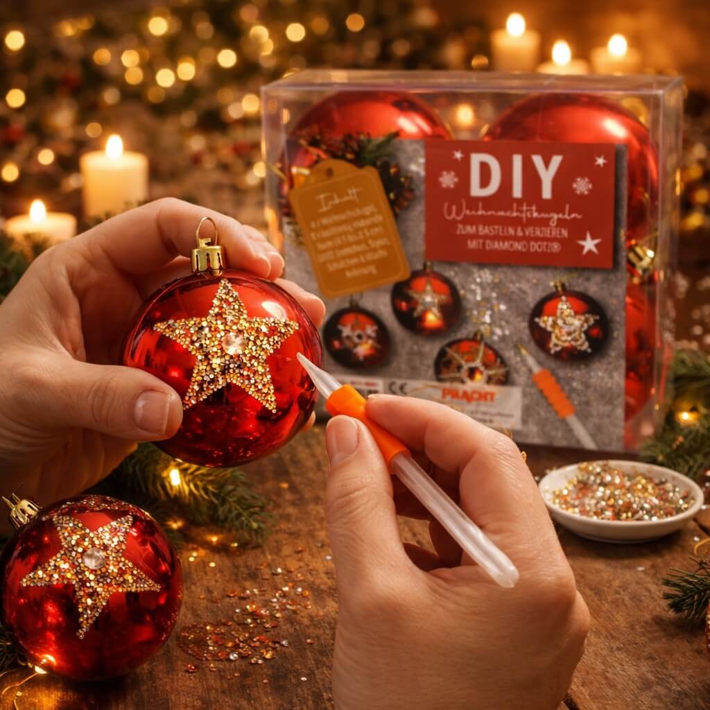 Sættet gør det nemt og sjovt at lave dine egne julekugler – uanset om du er nybegynder eller allerede elsker diamond painting og kreative projekter.