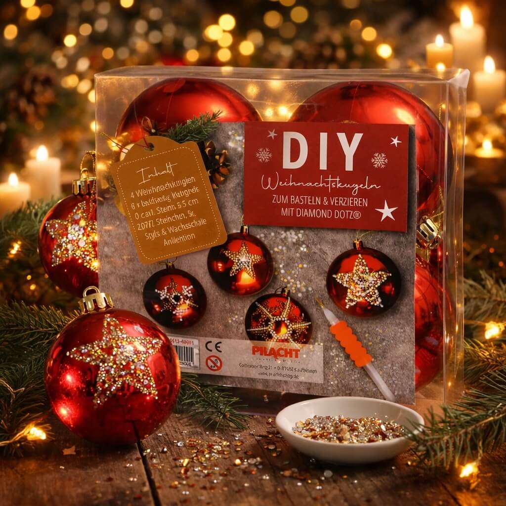 DIY Røde Julekugler med Diamond Dotz – Kreativt Julepynt Sæt