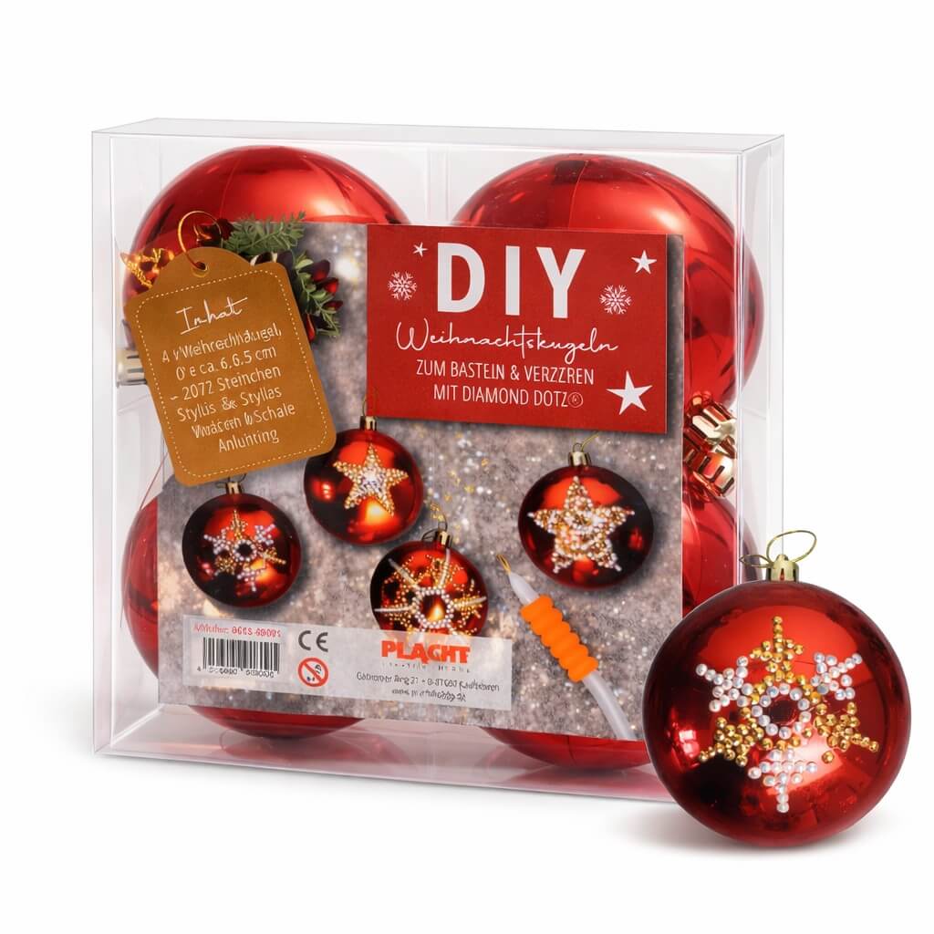 Skab unik og personlig julepynt med dette DIY sæt med røde julekugler og Diamond Dotz rhinsten.