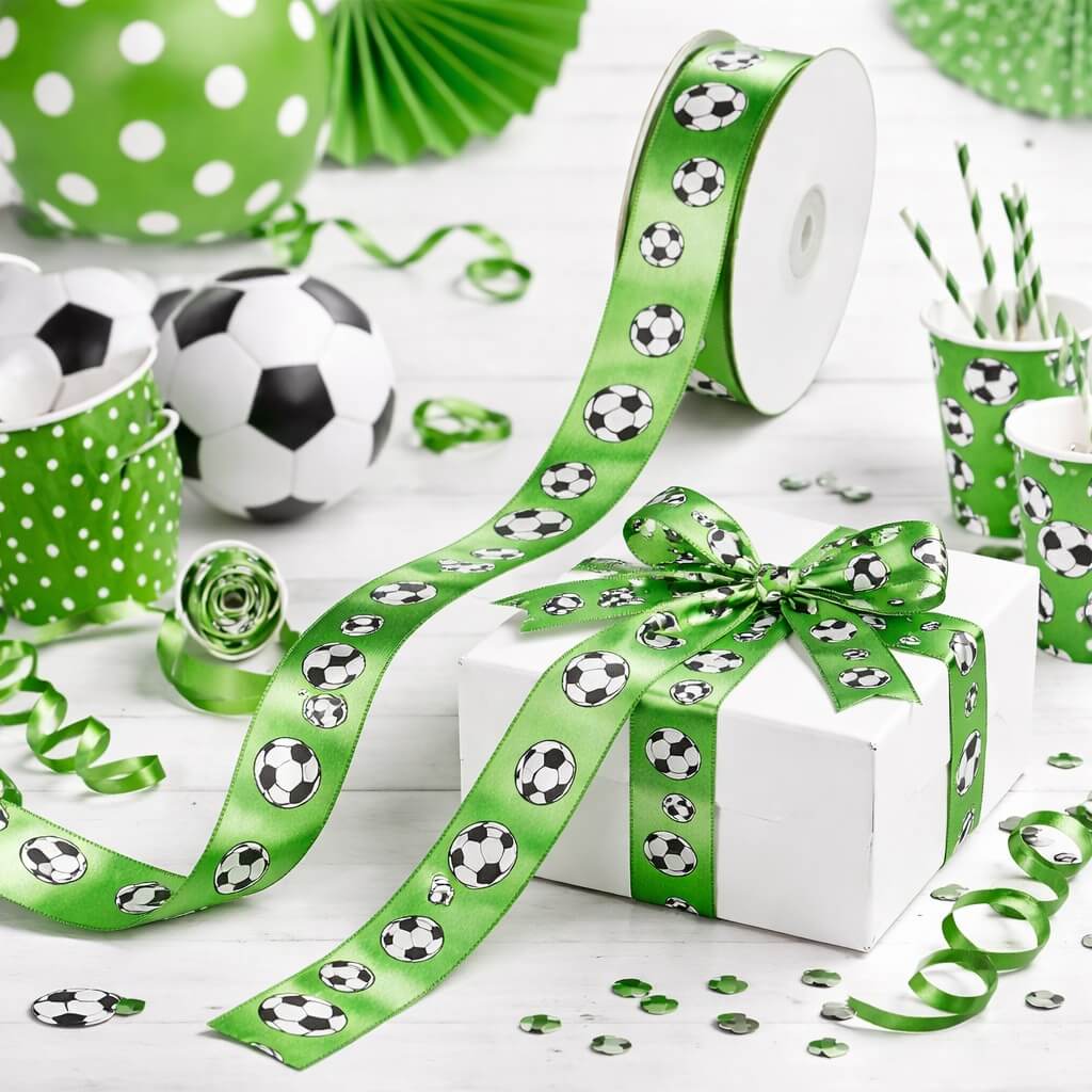 Dette grønne bånd med fodbolde er det oplagte valg til enhver fodboldfest, sportsbegivenhed eller temafødselsdag.