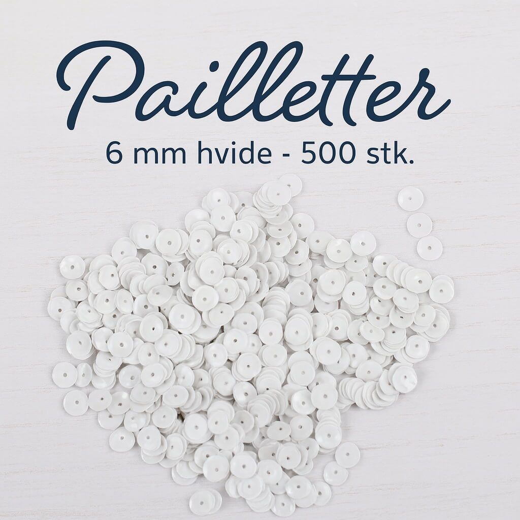 Der er 500 stk. hvide pailletter i pakken.