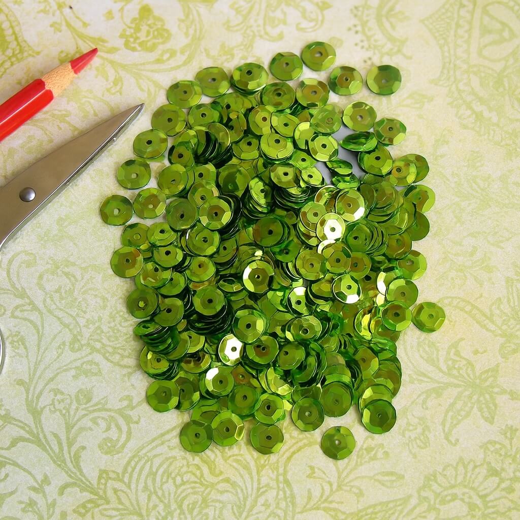 Forvandl dine kreative projekter med de strålende og iøjnefaldende palietter bladgrønne 6mm (500 stk.) – et uundværligt tilbehør for enhver, der elsker at arbejde med detaljer, glans og farvespil.