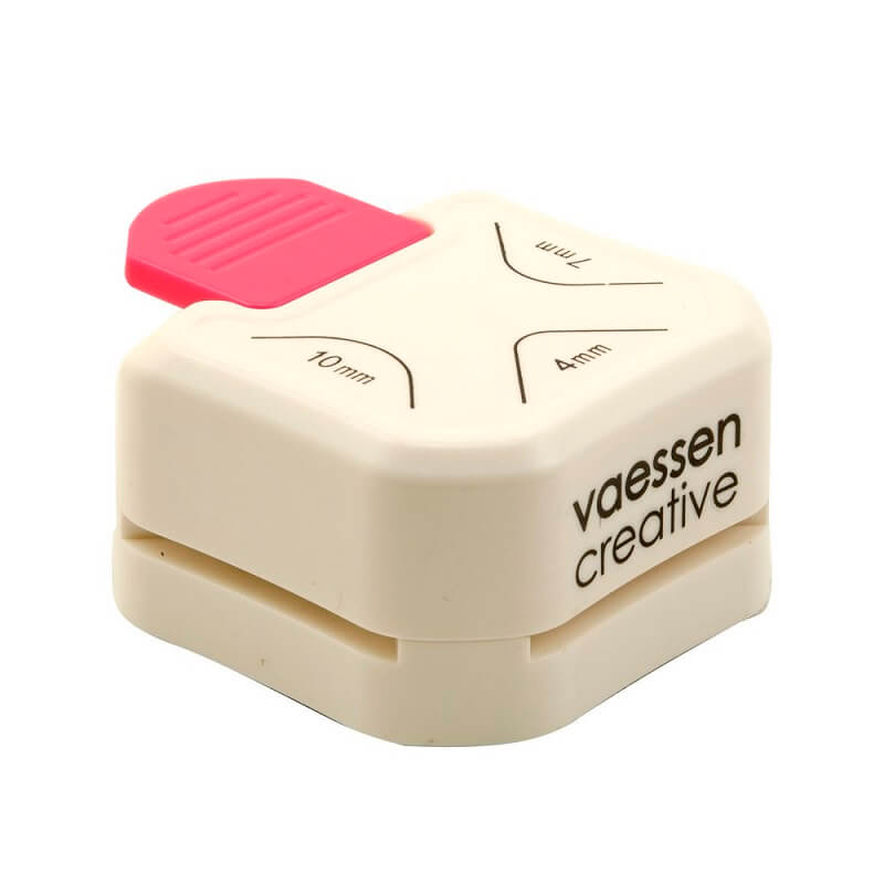 Med denne Vaessen Creative 3 i 1 papir punch stansejern til hjørner 4, 7, 10mm udstanser kan du nemt stanse tre hjørne størrelser med kun et tryk.