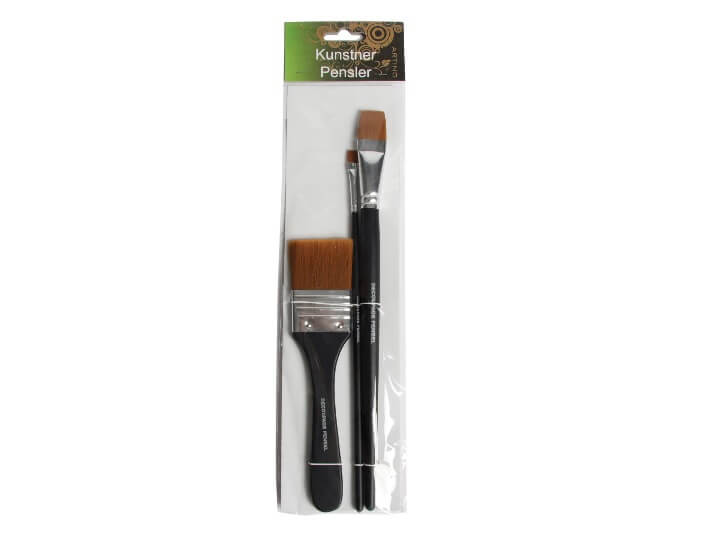 Dette penselsæt indeholder 3 pensler i forskellige størrelser, hvilket giver dig mulighed for at bruge til dit arbejde med forskellige detaljer og på forskellige overflader.