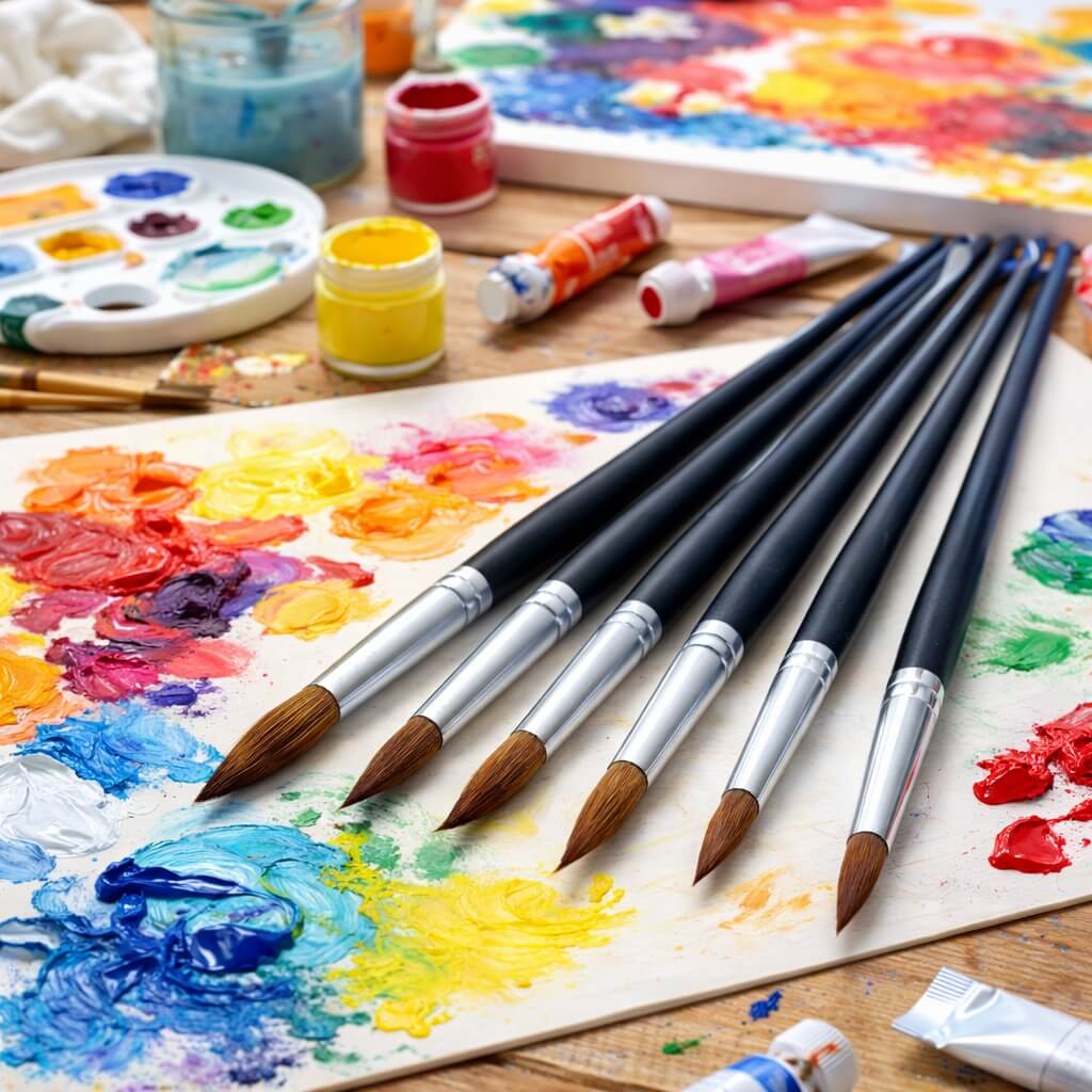 Kunstner Pensel Sæt – 6 stk. Runde Pensler til Maleri & Kunst