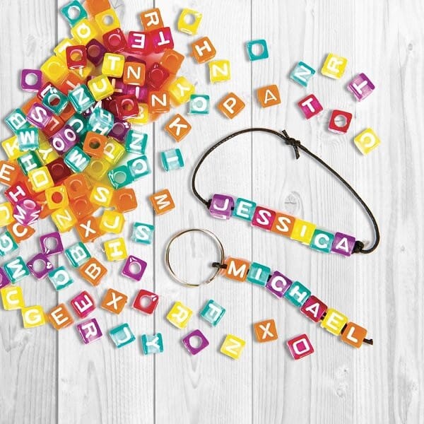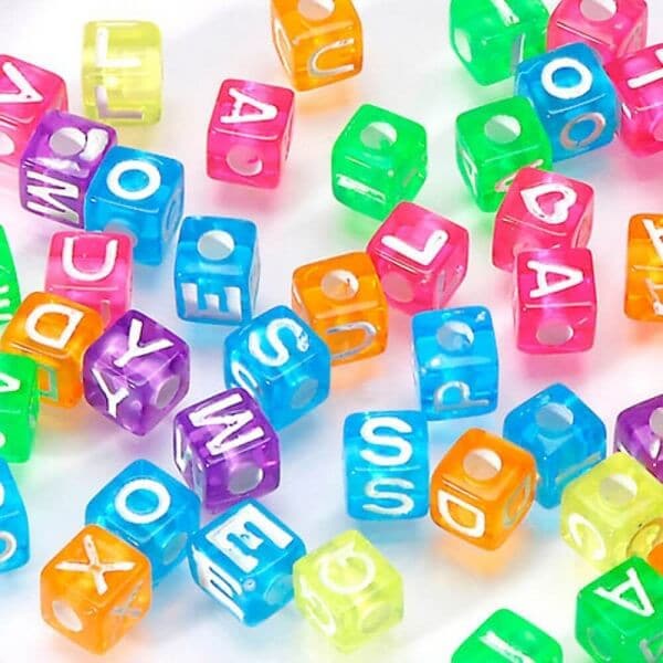 Flotte små firkantede akrylperler på 6×6 mm i forskellige transparente farver til lav det selv smykker og andre kreative håndarbejde til børn og voksne. Lav dine egne diy smykker som armbånd, halskæder og flotte smykker og tilføje en tekst, navn eller tal. De er nemme at bruge af både børn og voksne når der skal laves sjove ting, hjemmelavet julegaver, gaver til venner og familie, dine egne smykker og meget mere.