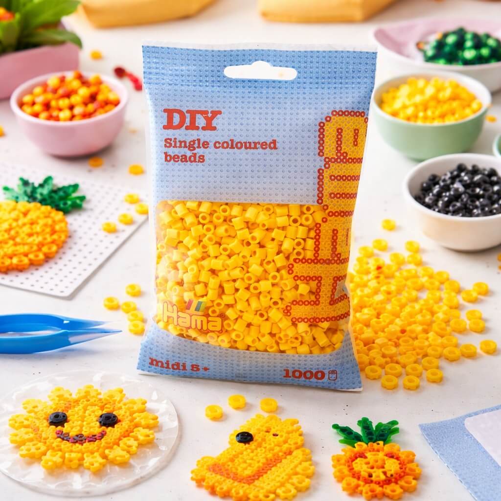 Skab solrige designs og farverige mønstre med disse gule Hama Midi perler i farvekode 207-03.