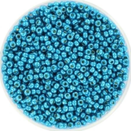 Du modtager disse galvaniserede blå Miyuki perler seed beads i en pose med farvenummer, farvenavn, størrelse og vægt.