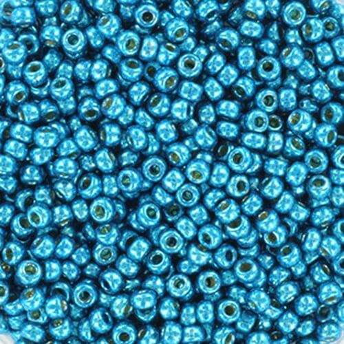 Disse galvaniserede blå Miyuki perler seed beads 11/0 duracoat galvanized capri blue 5113 er galvaniserede blå glasperler.