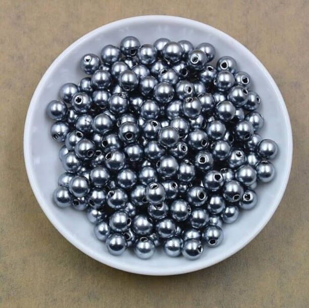 Runde grå voksperler er tidløse tilbehør til enhver form for kreativ håndarbejde og smykkefremstilling.