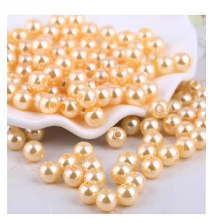 Disse perler er lavet af akryl og har en smuk gul farve med en perlemorsstrålende overflade, som giver dem et luksuriøst og tidløst udtryk.