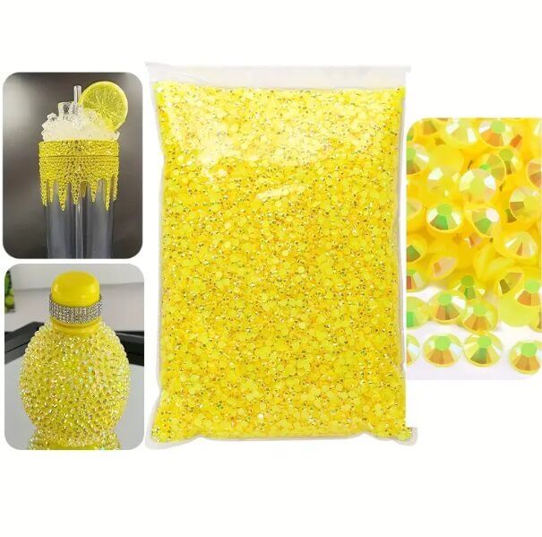 En af de betydelige fordele ved vores 2mm iriserende gule rhinsten er deres alsidighed. Med en flad bagside er de nemme at fastsætte på en bred vifte af overflader, fra papir og tekstiler til metal og plast.