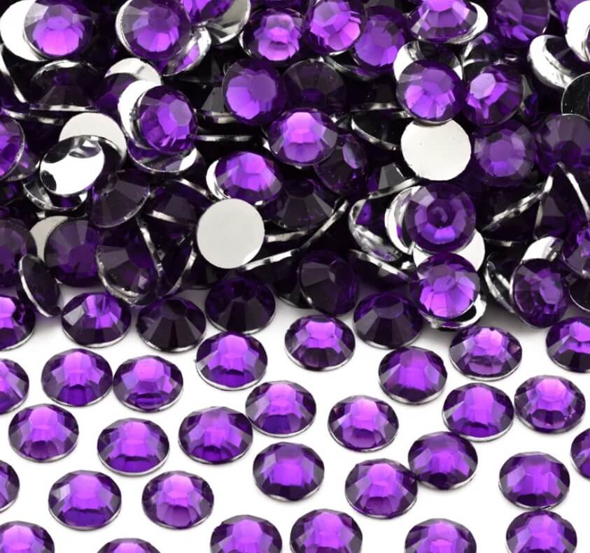 Rigtig flotte mørke lilla runde rhinsten på 3mm med flad bagside som er velegnet som pynt til scrapbooking, tøj, kortfremstilling, invitationer, dekoration på materialer, mobiltelefon, iPad, sko, negle og meget mere.