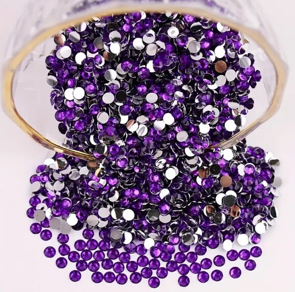 I posen er der hele 500 flotte små runde 3mm rhinsten i en smuk og dekorativ lilla farve med en skinnende effekt fra lyset og disse rhinsten har en flad bagside som gør egnet til at sætte fast på mange forskellige materialer.