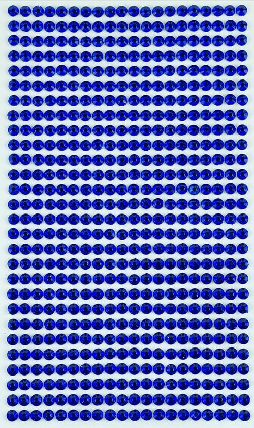 På arket er der hele 912 små flotte og charmerende runde selvklæbende rhinsten i en skinnende blå farve.
