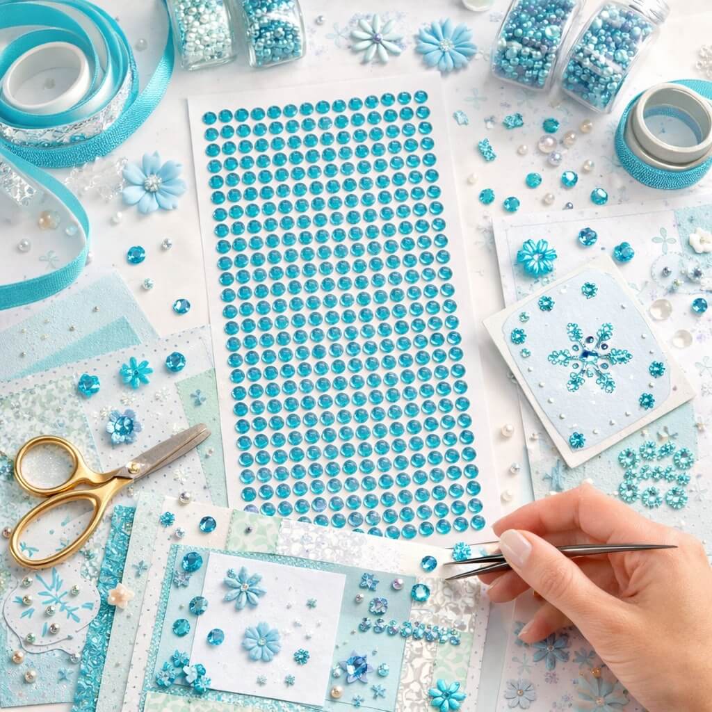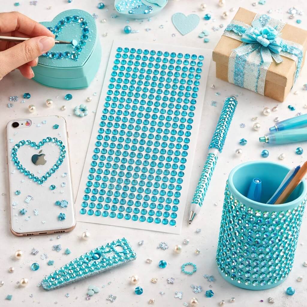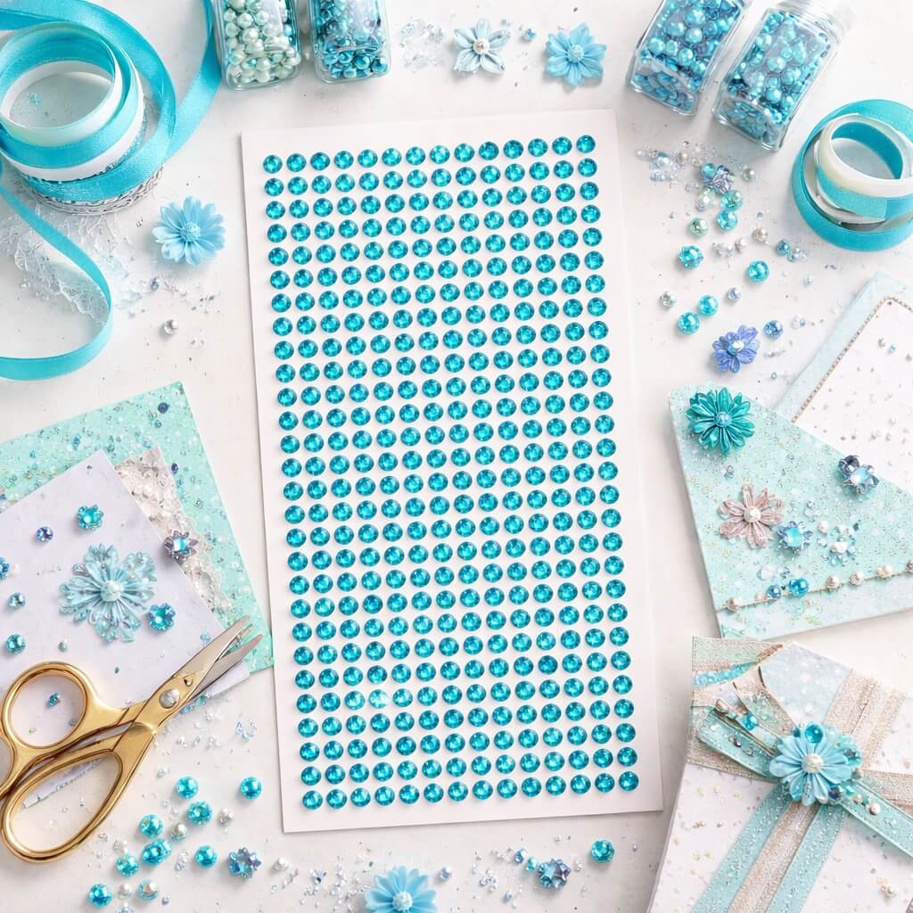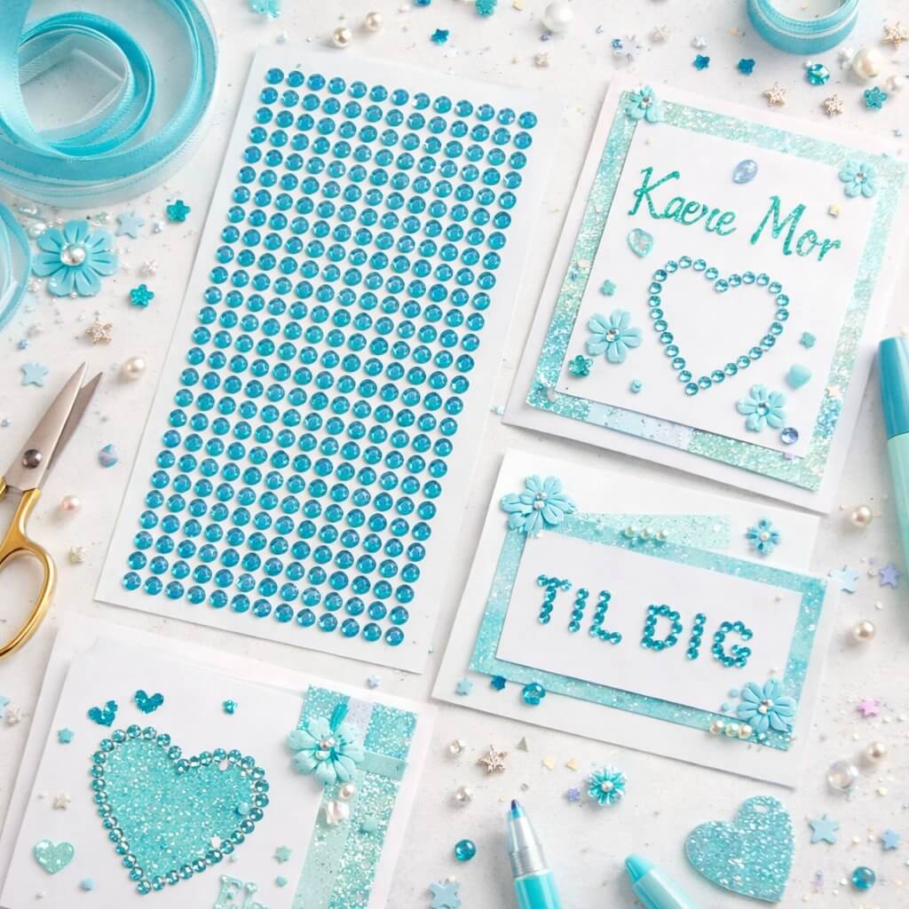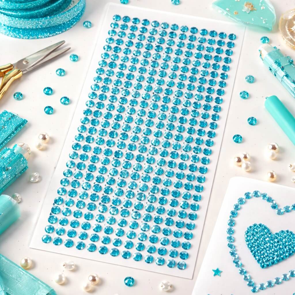 Giv dine kreative projekter et elegant og funklende udtryk med selvklæbende rhinsten i lyseblå turkis.