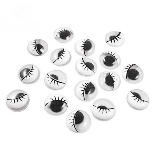 Rulleøjne runde 20mm med vipper er dekorative øjne, designet til at give liv til kreative hobby- og håndværksprojekter.