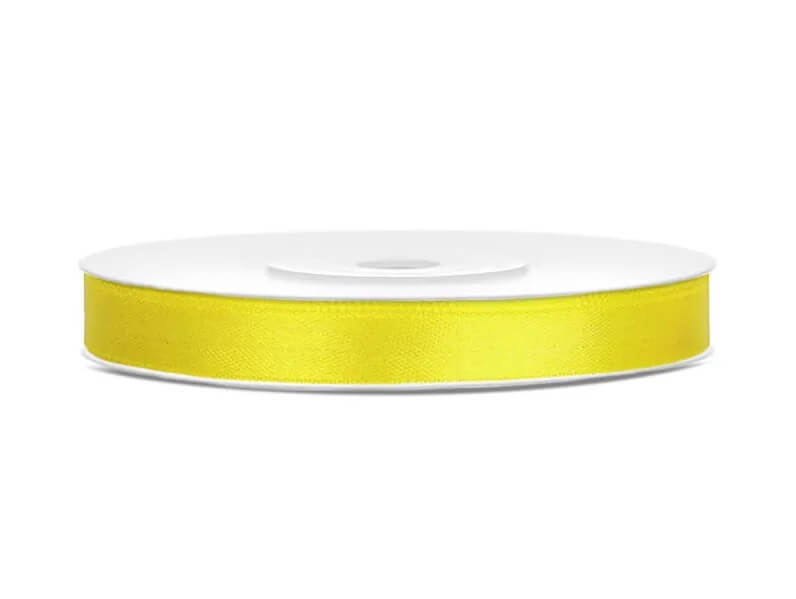 Satinbånd citron gul 6 mm er perfekt til dekorationer, såsom sløjfer på bordkort, pynt til blomsterarrangementer og gaveindpakninger.