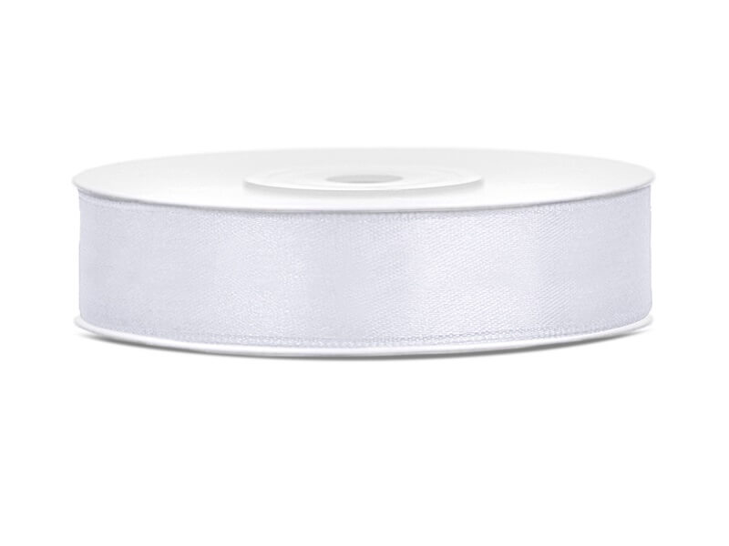 Hvid satinbånd 12 mm er et elegant dekorativt bånd, fremstillet af 100% polyester, der tilbyder både funktionalitet og æstetik.
