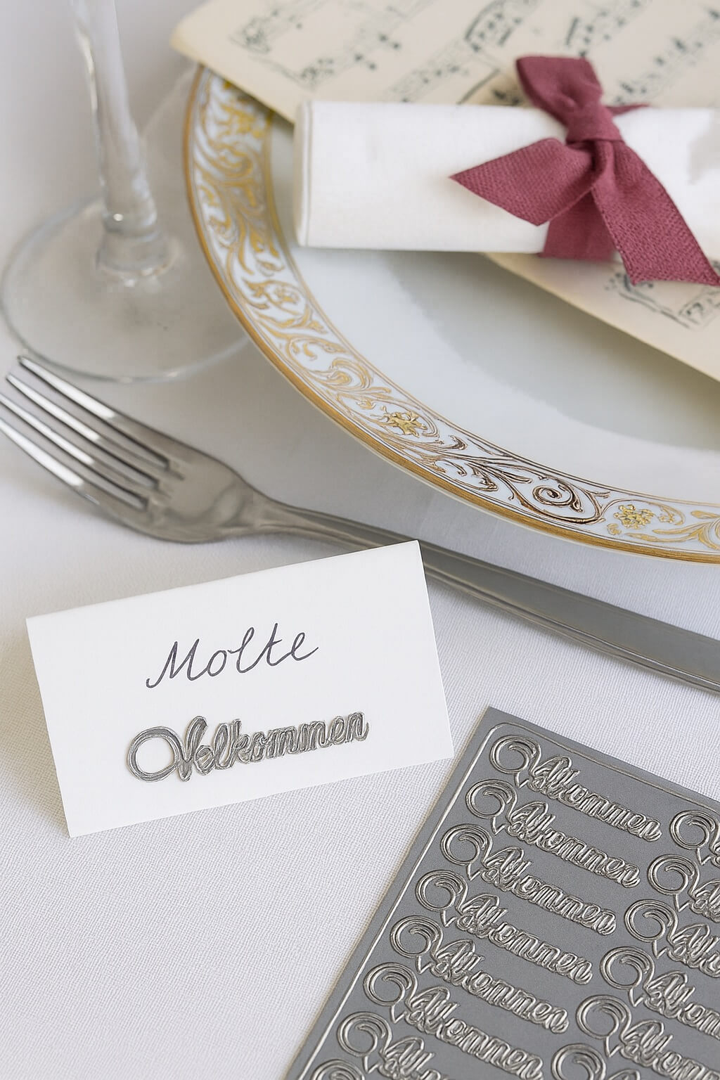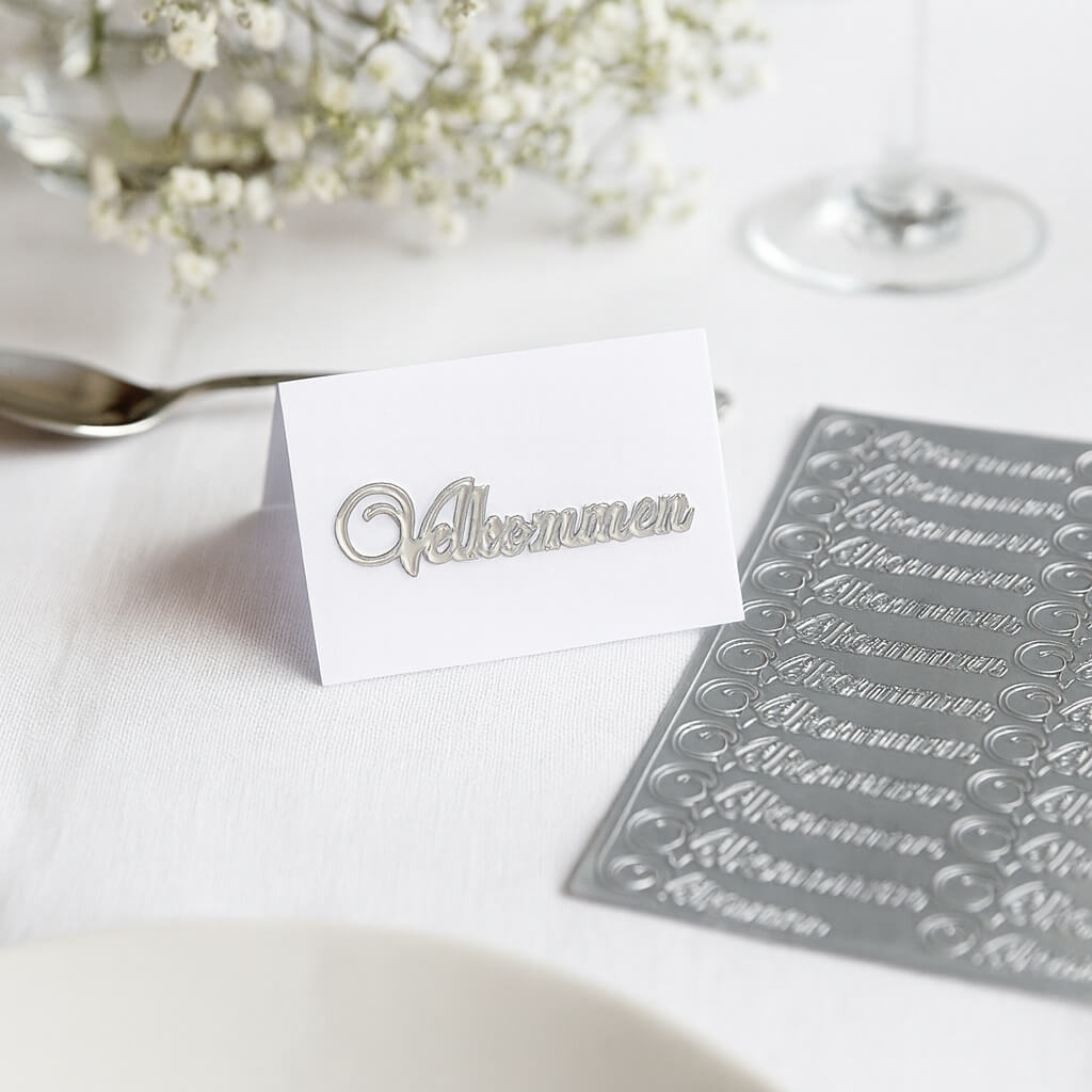 Giv dine gæster en smuk og stilfuld velkomst med disse Stickers “Velkommen” i sølv – den perfekte lille detalje, der gør en stor forskel ved enhver festlig lejlighed.