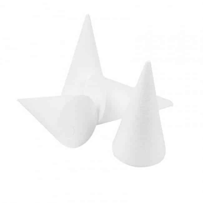Selve styropor materialet er også bedre kendt som flamingo. Det består kun af 2% polystyren-plast og 98% luft. Disse styroporfigurer er formet som en kegle og måler 26 cm i højden. Styropor er et meget let materiale som er nemt at anvende sammen med andre kreative hobby materialer.
