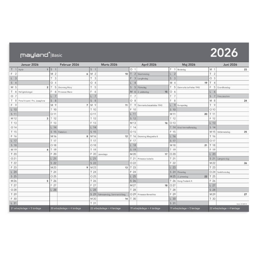 Den basic kontorkalender A3 2026 er en stilren og funktionel vægkalender designet til at imødekomme moderne kontorbehov med fokus på brugervenlighed og bæredygtighed.