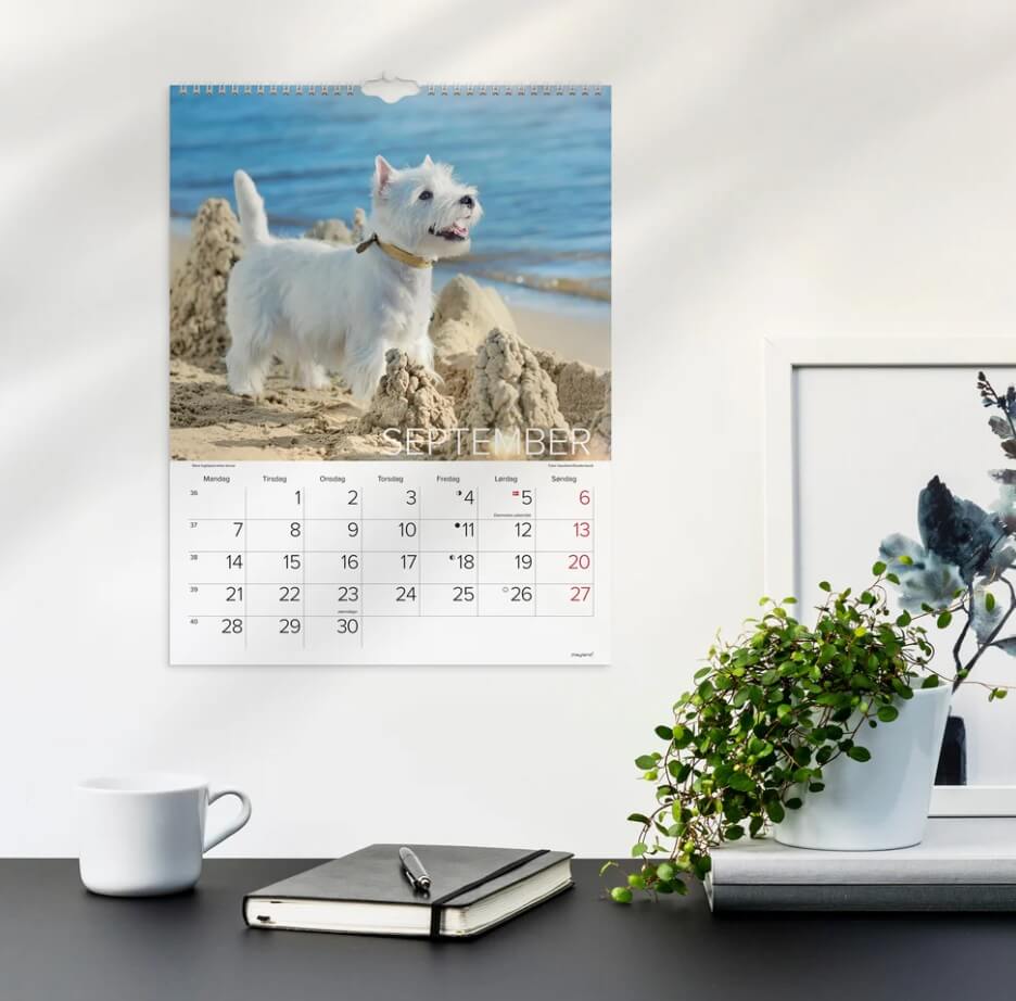Uanset om den hænger i køkkenet, kontoret eller børneværelset, giver denne hunde-kalender både funktionalitet og varme i rummet.