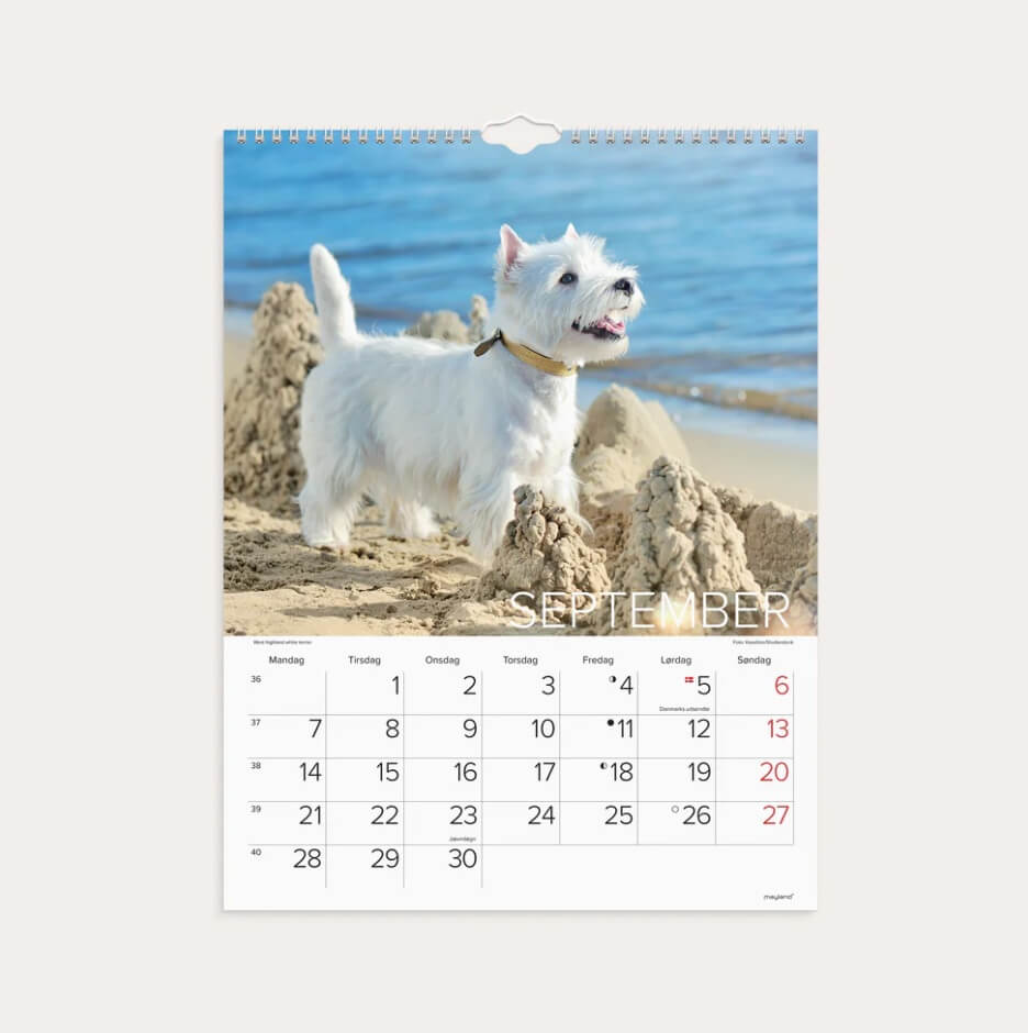 Der er i alt 12 forskellige hundebilleder – ét pr. måned.