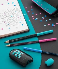 Kvalitets Faber Castell Jumbo Grip blyant i sort og turkis farver. Denne Jumbo Grip blyant er med Faber Castells kendte trekantede form, som giver det perfekte ergonomiske greb om blyanten for børnene. På midten er der Faber Castells patenterede soft grip zone prikker, som gør blyanten er nemt for de mindre børn at holde i hånden uden at den glider. Blyet indeni i denne Faber blyant er brudsikker og er ekstra stærkt og derfor ikke knækker, selvom blyanten tabes på gulvet.